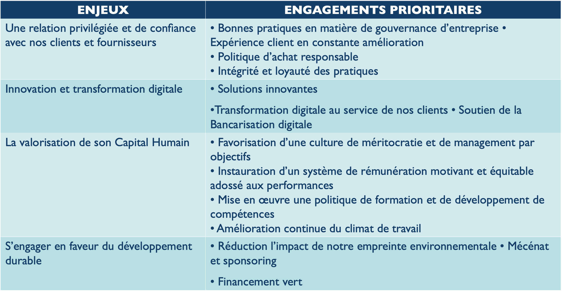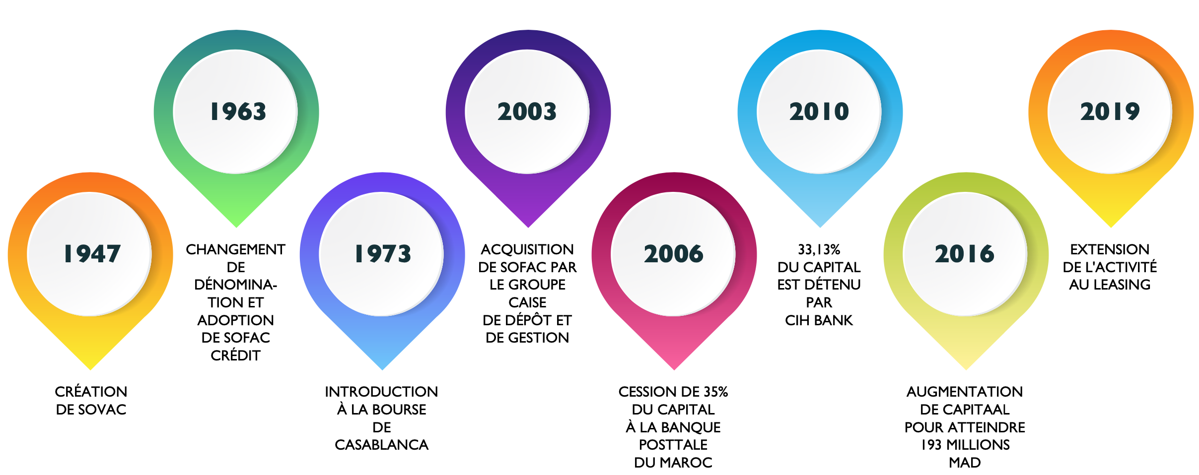 Sofac bénéficie de l’expertise appréciable de ses actionnaires : CIH Bank et Barid Al Maghrib. Forte de cet appui, Sofac bénéficie, aussi, du retour d’expérience de son actionnaire de référence CIH BANK en matière d’engagements RSE.