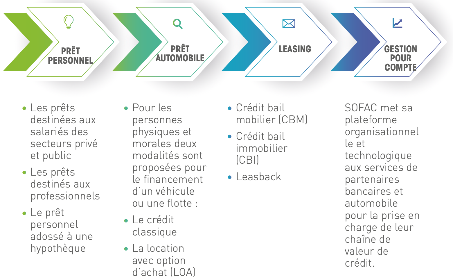 Sofac offre des solutions de financement adaptées, un accompagnement innovant, qualitatif et en phase avec le marché local.